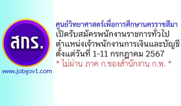 ศูนย์วิทยาศาสตร์เพื่อการศึกษานครราชสีมา รับสมัครพนักงานราชการทั่วไป ตำแหน่งเจ้าพนักงานการเงินและบัญชี ตั้งแต่วันที่ 1-11 กรกฎาคม 2567