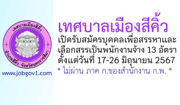 เทศบาลเมืองสีคิ้ว รับสมัครบุคคลเพื่อสรรหาและเลือกสรรเป็นพนักงานจ้าง 13 อัตรา ตั้งแต่วันที่ 17-26 มิถุนายน 2567