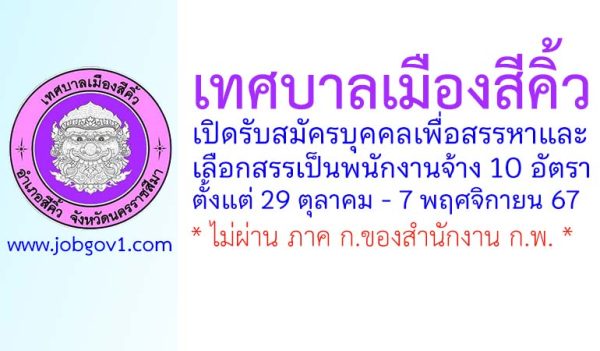 เทศบาลเมืองสีคิ้ว รับสมัครบุคคลเพื่อสรรหาและเลือกสรรเป็นพนักงานจ้าง 10 อัตรา ตั้งแต่ 29 ตุลาคม – 7 พฤศจิกายน 2567