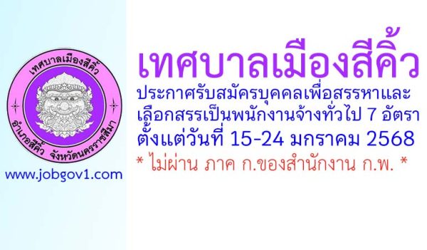 เทศบาลเมืองสีคิ้ว รับสมัครบุคคลเพื่อสรรหาและเลือกสรรเป็นพนักงานจ้างทั่วไป 7 อัตรา ตั้งแต่วันที่ 15-24 มกราคม 2568