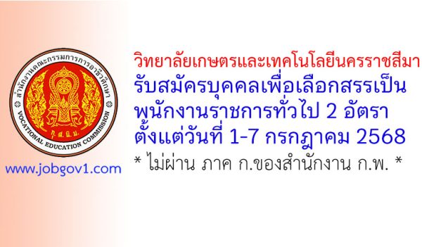 วิทยาลัยเกษตรและเทคโนโลยีนครราชสีมา รับสมัครบุคคลเพื่อเลือกสรรเป็นพนักงานราชการทั่วไป 2 อัตรา ตั้งแต่วันที่ 1-7 กรกฎาคม 2568