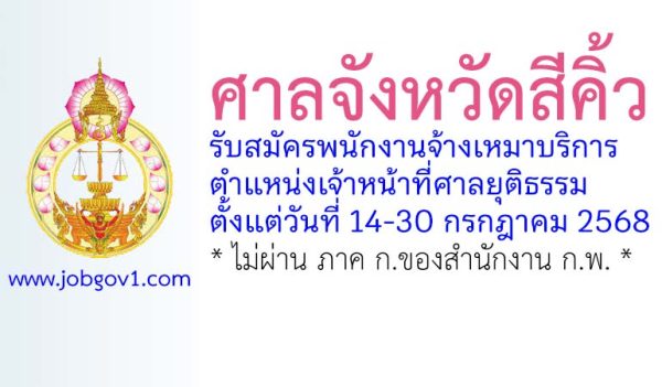 ศาลจังหวัดสีคิ้ว รับสมัครพนักงานจ้างเหมาบริการ ตำแหน่งเจ้าหน้าที่ศาลยุติธรรม ตั้งแต่วันที่ 14-30 กรกฎาคม 2568