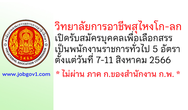วิทยาลัยการอาชีพสุไหงโก-ลก รับสมัครบุคคลเพื่อเลือกสรรเป็นพนักงานราชการทั่วไป 5 อัตรา ตั้งแต่วันที่ 7-11 สิงหาคม 2566