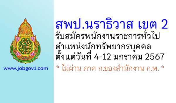 สพป.นราธิวาส เขต 2 รับสมัครพนักงานราชการทั่วไป ตำแหน่งนักทรัพยากรบุคคล ตั้งแต่วันที่ 4-12 มกราคม 2567