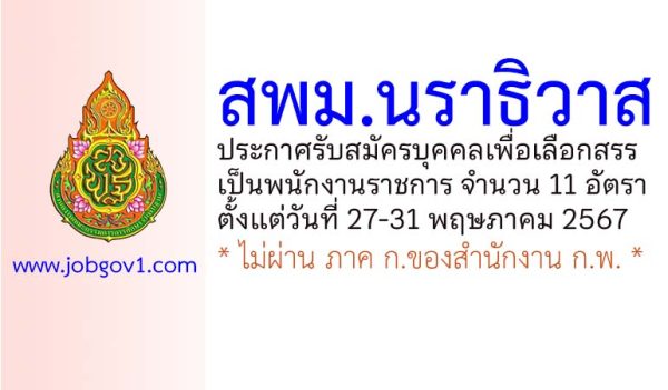 สำนักงานเขตพื้นที่การศึกษามัธยมศึกษานราธิวาส รับสมัครบุคคลเพื่อเลือกสรรเป็นพนักงานราชการ 11 อัตรา ตั้งแต่วันที่ 27-31 พฤษภาคม 2567