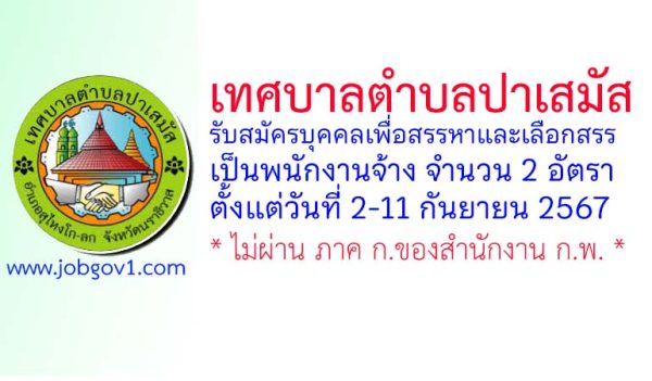 เทศบาลตำบลปาเสมัส รับสมัครบุคคลเพื่อสรรหาและเลือกสรรเป็นพนักงานจ้าง 2 อัตรา ตั้งแต่วันที่ 2-11 กันยายน 2567