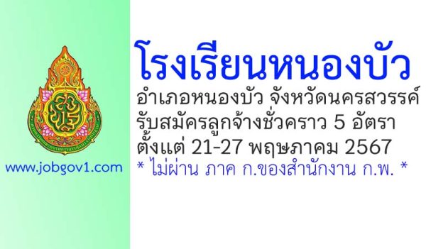 โรงเรียนหนองบัว รับสมัครลูกจ้างชั่วคราว 5 อัตรา ตั้งแต่วันที่ 21-27 พฤษภาคม 2567