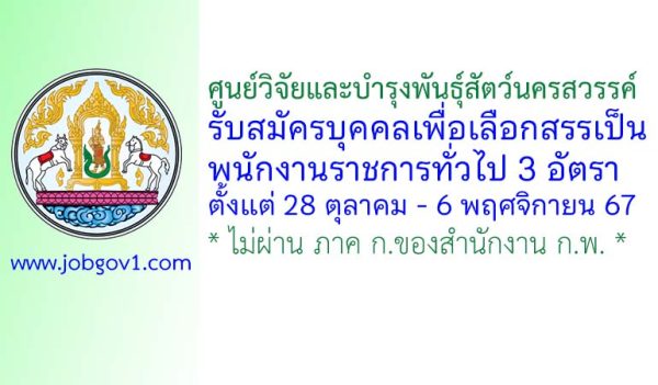 ศูนย์วิจัยและบำรุงพันธุ์สัตว์นครสวรรค์ รับสมัครบุคคลเพื่อเลือกสรรเป็นพนักงานราชการทั่วไป 3 อัตรา