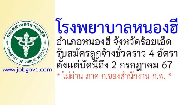 โรงพยาบาลหนองฮี รับสมัครลูกจ้างชั่วคราว 4 อัตรา ตั้งแต่บัดนี้ถึง 2 กรกฎาคม 2567