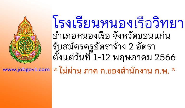 โรงเรียนหนองเรือวิทยา รับสมัครครูอัตราจ้าง 2 อัตรา ตั้งแต่วันที่ 1-12 พฤษภาคม 2566