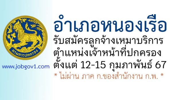 อำเภอหนองเรือ รับสมัครลูกจ้างเหมาบริการ ตำแหน่งเจ้าหน้าที่ปกครอง ตั้งแต่วันที่ 12-15 กุมภาพันธ์ 2567
