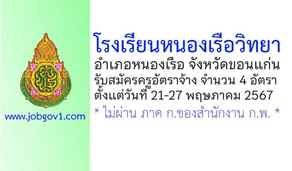 โรงเรียนหนองเรือวิทยา รับสมัครครูอัตราจ้าง 4 อัตรา ตั้งแต่วันที่ 21-27 พฤษภาคม 2567