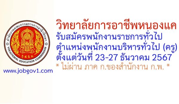 วิทยาลัยการอาชีพหนองแค รับสมัครพนักงานราชการทั่วไป ตำแหน่งพนักงานบริหารทั่วไป (ครู) ตั้งแต่วันที่ 23-27 ธันวาคม 2567