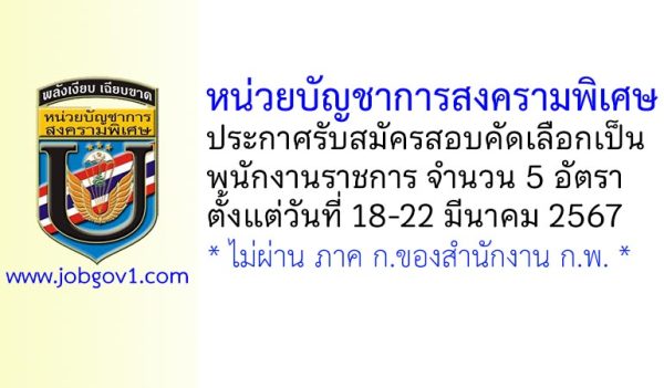 หน่วยบัญชาการสงครามพิเศษ รับสมัครสอบคัดเลือกเป็นพนักงานราชการ 5 อัตรา ตั้งแต่วันที่ 18-22 มีนาคม 2567