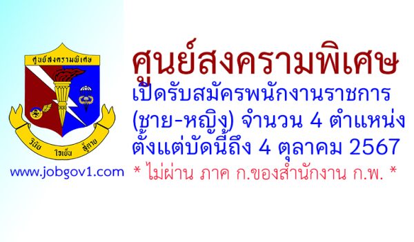 ศูนย์สงครามพิเศษ รับสมัครพนักงานราชการ (ชาย-หญิง) 4 ตำแหน่ง ตั้งแต่บัดนี้ถึง 4 ตุลาคม 2567