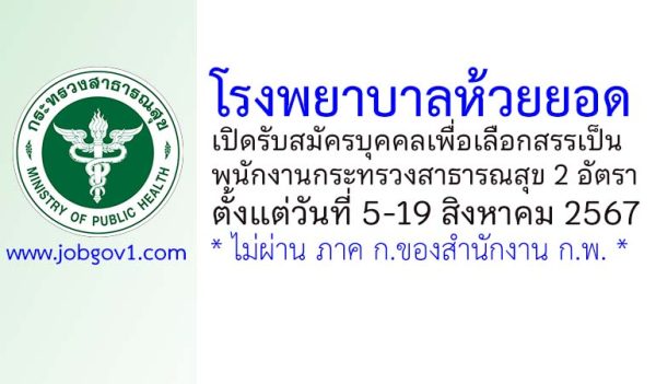 โรงพยาบาลห้วยยอด รับสมัครพนักงานกระทรวงสาธารณสุขทั่วไป 2 อัตรา ตั้งแต่วันที่ 5-19 สิงหาคม 2567
