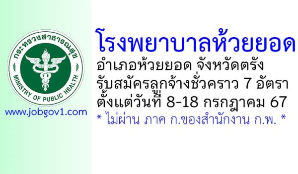 โรงพยาบาลห้วยยอด รับสมัครลูกจ้างชั่วคราว 7 อัตรา ตั้งแต่วันที่ 8-18 กรกฎาคม 2567