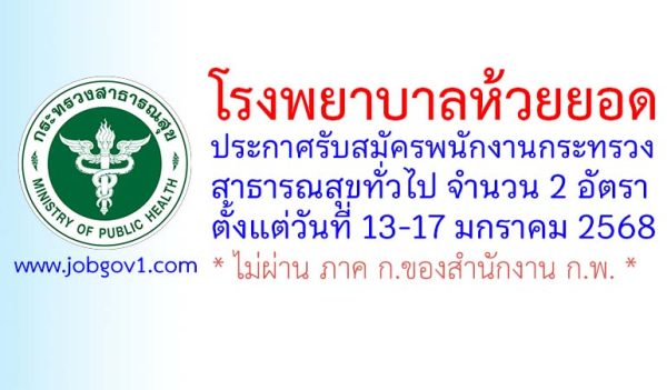 โรงพยาบาลห้วยยอด รับสมัครพนักงานกระทรวงสาธารณสุขทั่วไป 2 อัตรา ตั้งแต่วันที่ 13-17 มกราคม 2568