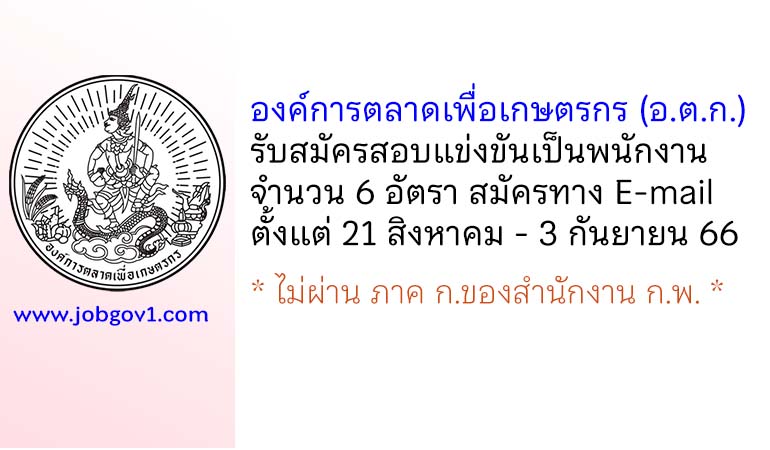 องค์การตลาดเพื่อเกษตรกร (อ.ต.ก.) รับสมัครสอบแข่งขันเป็นพนักงาน 6 อัตรา ตั้งแต่ 21 สิงหาคม – 3 กันยายน 2566
