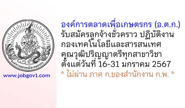 องค์การตลาดเพื่อเกษตรกร รับสมัครลูกจ้างชั่วคราว ปฏิบัติงานกองเทคโนโลยีและสารสนเทศ ตั้งแต่วันที่ 16-31 มกราคม 2567