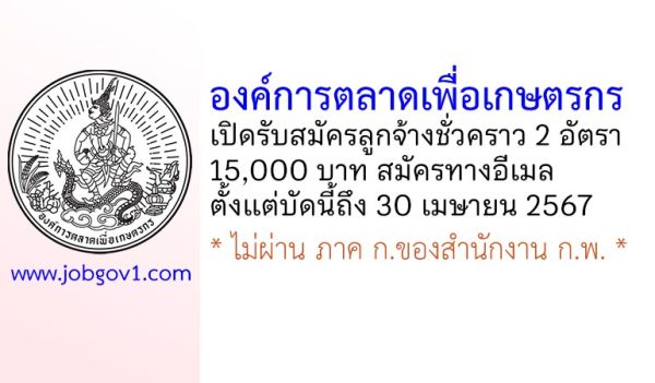 องค์การตลาดเพื่อเกษตรกร รับสมัครลูกจ้างชั่วคราว จำนวน 2 อัตรา ตั้งแต่บัดนี้ถึง 30 เมษายน 2567