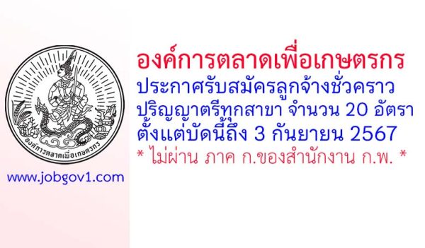 องค์การตลาดเพื่อเกษตรกร (อ.ต.ก.) รับสมัครลูกจ้างชั่วคราว 20 อัตรา ตั้งแต่บัดนี้ถึง 3 กันยายน 2567