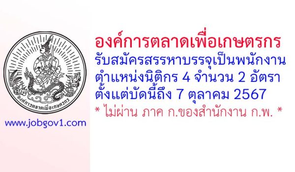 องค์การตลาดเพื่อเกษตรกร รับสมัครพนักงาน ตำแหน่งนิติกร 4 จำนวน 2 อัตรา ตั้งแต่บัดนี้ถึง 7 ตุลาคม 2567