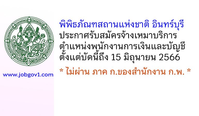 พิพิธภัณฑสถานแห่งชาติ อินทร์บุรี รับสมัครจ้างเหมาบริการ ตำแหน่งพนักงานการเงินและบัญชี ตั้งแต่บัดนี้ถึง 15 มิถุนายน 2566