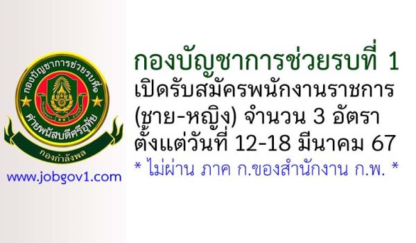 กองบัญชาการช่วยรบที่ 1 รับสมัครพนักงานราชการ 3 อัตรา ตั้งแต่วันที่ 12-18 มีนาคม 2567
