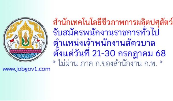 ศูนย์วิจัยการผสมเทียมและเทคโนโลยีชีวภาพสระบุรี รับสมัครพนักงานราชการทั่วไป ตำแหน่งเจ้าพนักงานสัตวบาล ตั้งแต่วันที่ 21-30 ตุลาคม 2568