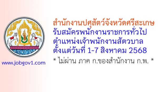 สำนักงานปศุสัตว์จังหวัดกาฬสินธุ์ รับสมัครพนักงานราชการทั่วไป ตำแหน่งเจ้าพนักงานสัตวบาล ตั้งแต่วันที่ 17-21 พฤศจิกายน 2568