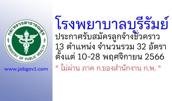 โรงพยาบาลบุรีรัมย์ รับสมัครพนักงานกระทรวงสาธารณสุขทั่วไป 4 อัตรา ตั้งแต่วันที่ 1-12 ธันวาคม 2568