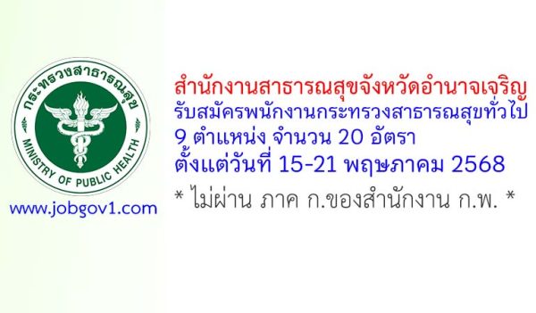สำนักงานสาธารณสุขจังหวัดน่าน รับสมัครพนักงานกระทรวงสาธารณสุขทั่วไป 26 อัตรา ตั้งแต่วันที่ 20-29 สิงหาคม 2568
