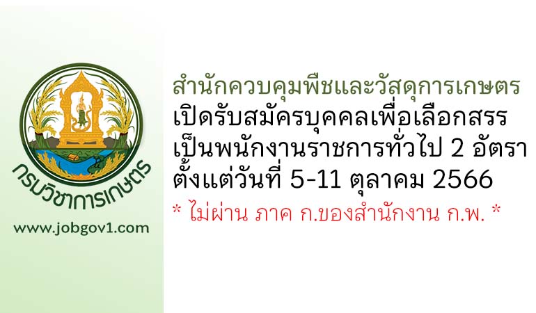 สำนักควบคุมพืชและวัสดุการเกษตร รับสมัครบุคคลเพื่อเลือกสรรเป็นพนักงานราชการทั่วไป 3 อัตรา