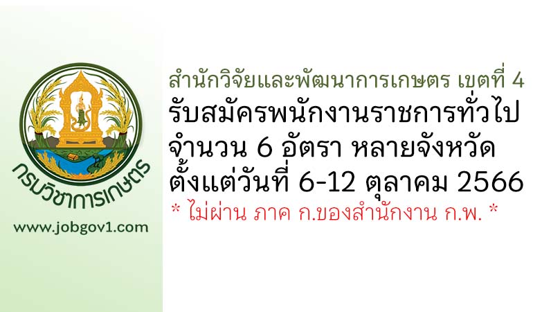 สำนักวิจัยและพัฒนาการเกษตร เขตที่ 4 รับสมัครบุคคลเพื่อเลือกสรรเป็นพนักงานราชการทั่วไป 6 อัตรา