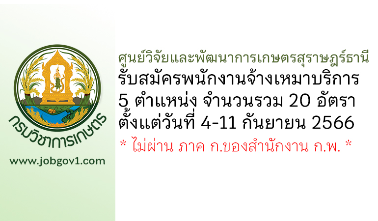 ศูนย์วิจัยและพัฒนาการเกษตรสุราษฎร์ธานี รับสมัครพนักงานจ้างเหมาบริการ 10 อัตรา