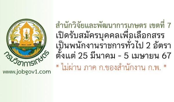 สำนักวิจัยและพัฒนาการเกษตร เขตที่ 7 รับสมัครบุคคลเพื่อเลือกสรรเป็นพนักงานราชการทั่วไป 2 อัตรา
