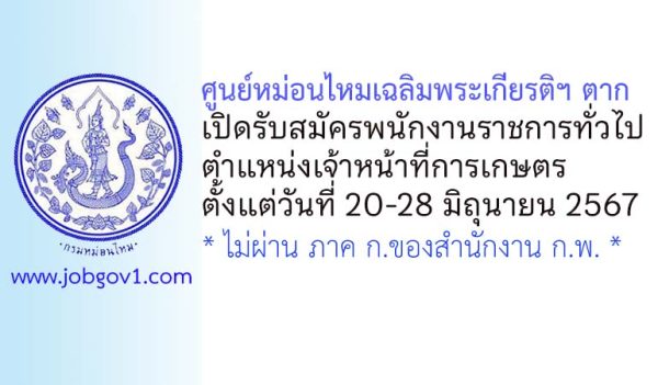ศูนย์หม่อนไหมเฉลิมพระเกียรติฯ ตาก รับสมัครพนักงานราชการทั่วไป ตำแหน่งเจ้าหน้าที่การเกษตร ตั้งแต่วันที่ 20-28 มิถุนายน 2567