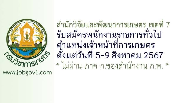 สำนักวิจัยและพัฒนาการเกษตร เขตที่ 7 รับสมัครพนักงานราชการทั่วไป ตำแหน่งเจ้าหน้าที่การเกษตร ตั้งแต่วันที่ 5-9 สิงหาคม 2567