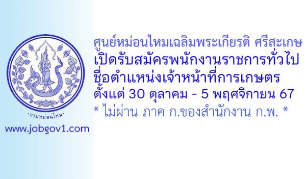 ศูนย์หม่อนไหมเฉลิมพระเกียรติ ศรีสะเกษ รับสมัครพนักงานราชการทั่วไป ตำแหน่งเจ้าหน้าที่การเกษตร ตั้งแต่ 30 ตุลาคม – 5 พฤศจิกายน 2567