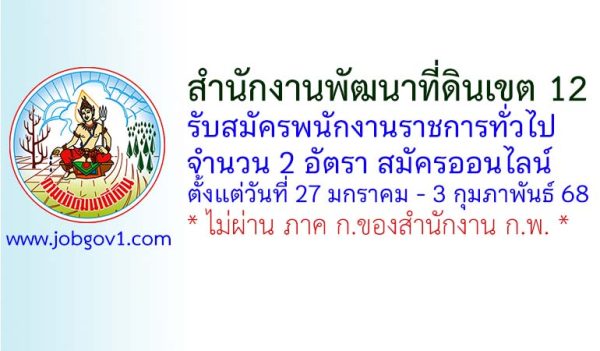 สำนักงานพัฒนาที่ดินเขต 12 รับสมัครบุคคลเพื่อเลือกสรรเป็นพนักงานราชการทั่วไป 2 อัตรา ตั้งแต่วันที่ 27 มกราคม – 3 กุมภาพันธ์ 2568