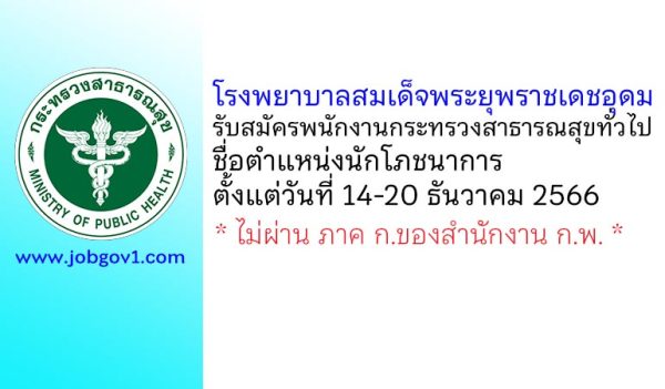 โรงพยาบาลสมเด็จพระยุพราชเดชอุดม รับสมัครพนักงานกระทรวงสาธารณสุขทั่วไป ตำแหน่งนักโภชนาการ ตั้งแต่วันที่ 14-20 ธันวาคม 2566