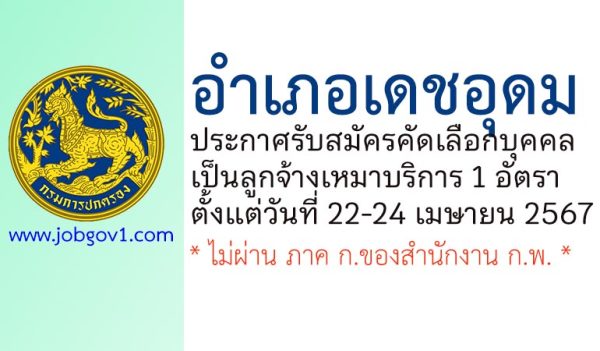 อำเภอเดชอุดม รับสมัครคัดเลือกบุคคลเป็นลูกจ้างเหมาบริการ 1 อัตรา ตั้งแต่วันที่ 22-24 เมษายน 2567
