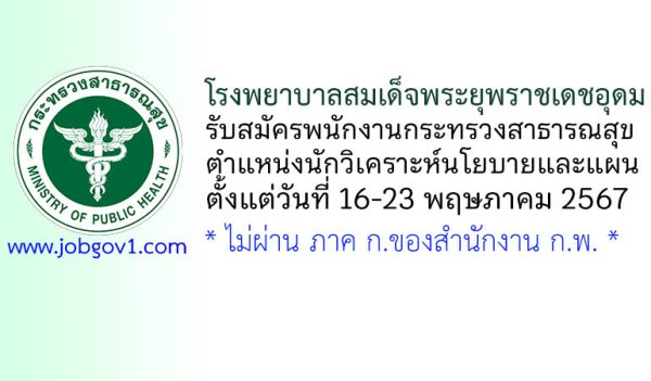 โรงพยาบาลสมเด็จพระยุพราชเดชอุดม รับสมัครพนักงานกระทรวงสาธารณสุข ตำแหน่งนักวิเคราะห์นโยบายและแผน