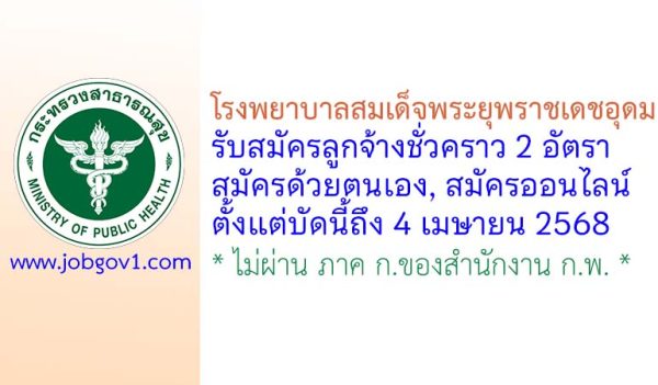 โรงพยาบาลสมเด็จพระยุพราชเดชอุดม รับสมัครลูกจ้างชั่วคราว 2 อัตรา ตั้งแต่บัดนี้ถึง 4 เมษายน 2568