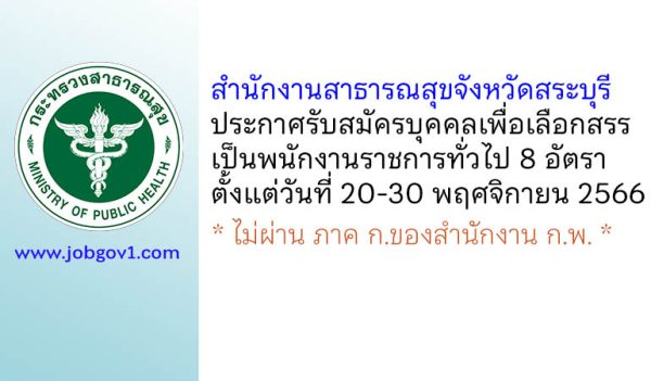 สำนักงานสาธารณสุขจังหวัดสุพรรณบุรี รับสมัครบุคคลเพื่อเลือกสรรเป็นพนักงานราชการทั่วไป 3 อัตรา ตั้งแต่วันที่ 10-14 พฤศจิกายน 2568