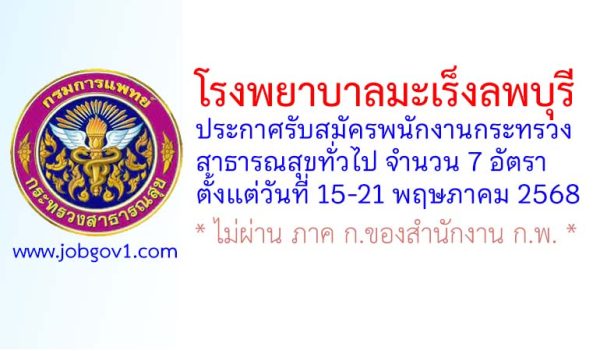 โรงพยาบาลมะเร็งลพบุรี รับสมัครพนักงานกระทรวงสาธารณสุขทั่วไป 11 อัตรา ตั้งแต่วันที่ 14-20 ตุลาคม 2568