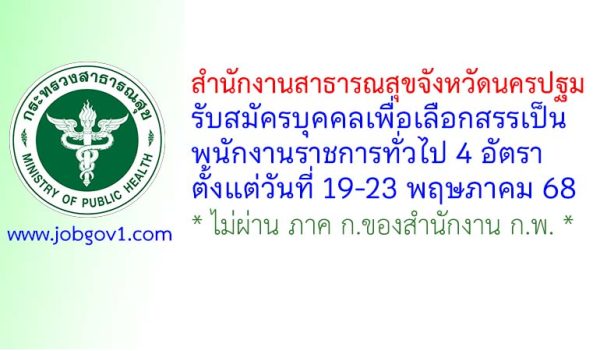 สำนักงานสาธารณสุขจังหวัดราชบุรี รับสมัครบุคคลเพื่อเลือกสรรเป็นพนักงานราชการทั่วไป 4 อัตรา ตั้งแต่ 29 กันยายน – 3 ตุลาคม 2568