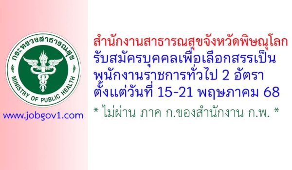สำนักงานสาธารณสุขจังหวัดนครสวรรค์ รับสมัครพนักงานกระทรวงสาธารณสุขทั่วไป 34 อัตรา ตั้งแต่วันที่ 15-19 ธันวาคม 2568