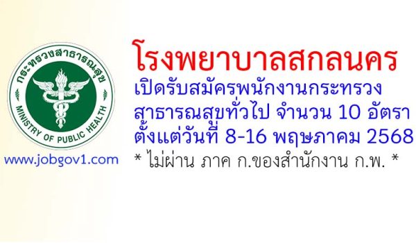 โรงพยาบาลสกลนคร รับสมัครพนักงานกระทรวงสาธารณสุขทั่วไป 26 อัตรา ตั้งแต่บัดนี้ถึง 3 ตุลาคม 2568
